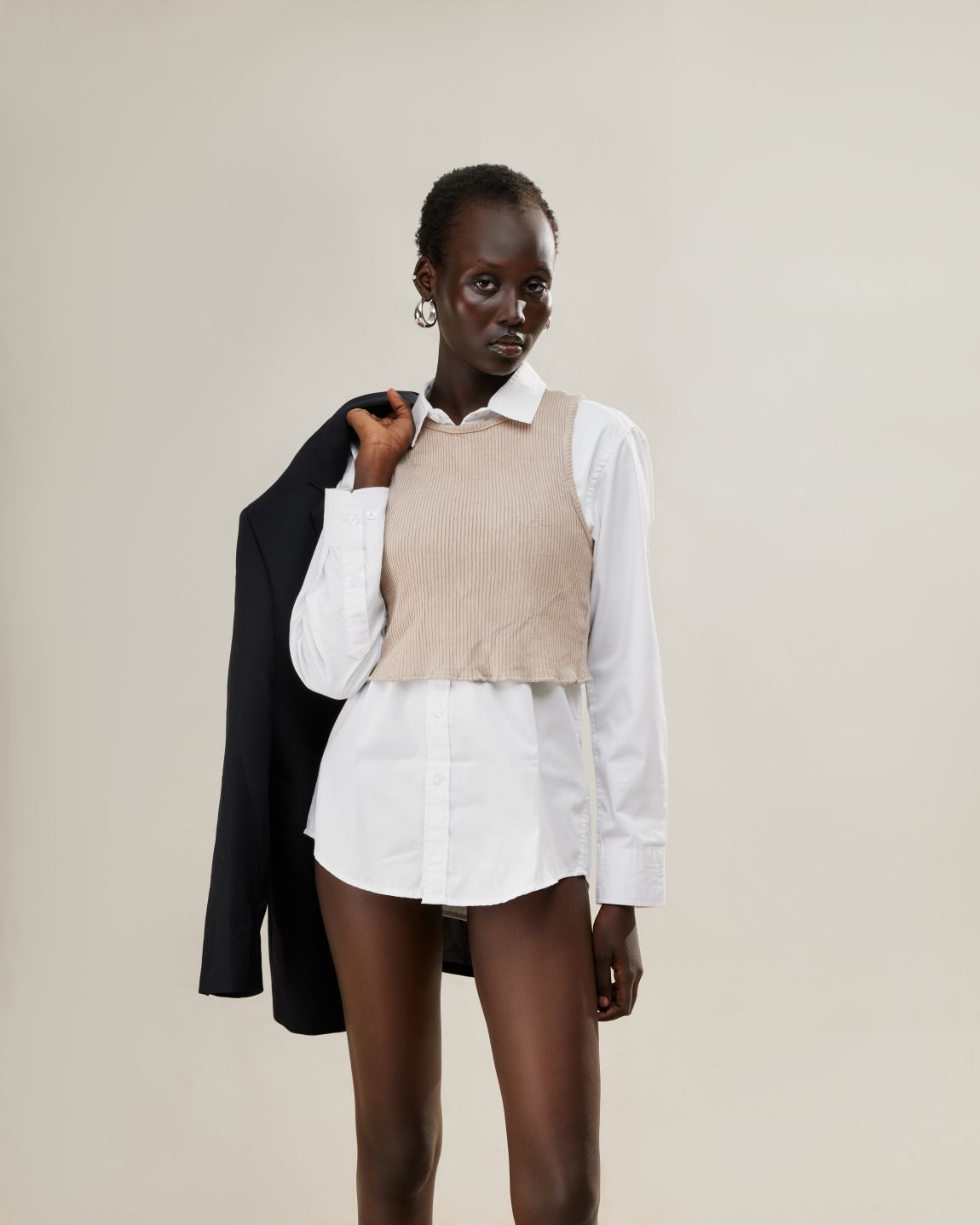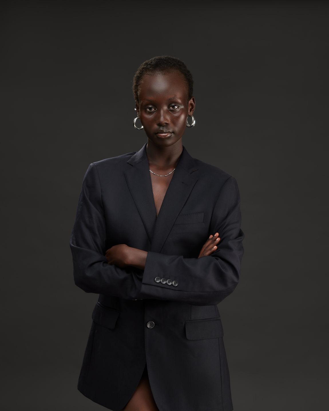 Hair: Dark brown